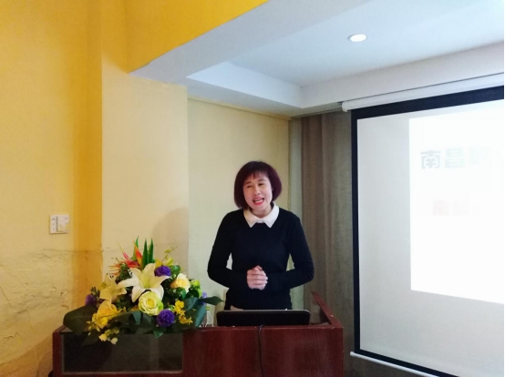 97级校友代表张美莲向大会致辞,她首先对南昌校友分会的成立表示祝贺,祝愿学院越办越好,各位校友发展越来越好!她说,南昌校友分会作为联系南昌校友的桥梁与纽带,它的成立不仅能够为在南昌发展的校友服务,而且能为校友们打造一个共享情谊、追求精神享受的家园。她希望在南昌的校友加强交流沟通,共同发展提高;希望南昌的校友为母校的发展献计献策。