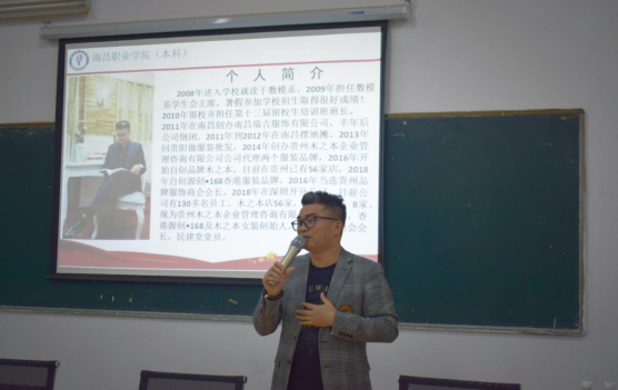 在此期间,班凤贵校友还应学院团委管鑫雷副书记的邀请为学院第二期大学生骨干培训班110多名学员,以“做一个有价值的人”为主题,做了励志讲座。班凤贵校友结合自身经历讲述怎样做一个有价值的人。他用经验告诉大学生骨干培训班学员们要认真学好本专业知识,学好一技之长,树立自信,要善于表达表现自己,要有成功的决心和信心。只有个人魅力强大,个人价值强大了,咱们才能吸引更多的人。班凤贵校友还与学员们进行了亲切互动,学员们积极提出自己的问题,他一一进行回答。同时欢迎学弟学妹们参观创客学园设立的服装设计工作室。