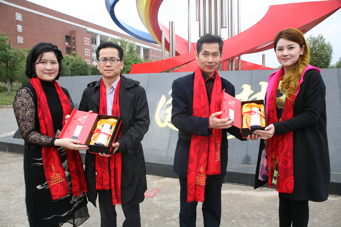 随后,校友们与学校领导一起举行了感恩母校捐赠仪式,学院领导和校友们互赠送礼品,校友们捐赠给母校一个古朴端庄而又寓意深刻的青铜鼎,祝愿母校永远鼎盛。校友们还参观了母校的机械工程系实训基地、图书馆和校史馆等,对于学校18年间翻天覆地的变化,他们感叹岁月如梭,赞赏学校发展迅速,为学院取得的丰硕成果感到无比自豪,为表达对母校的感激之情,对老师的感恩之心,对同学的情谊永恒长久,杨树校友作词作曲了歌曲《千里香》献给母校,祝福母校全体老师幸福安康,祝福同学们学业有成,梦想成真!