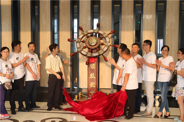 会后,英语0042班的校友们在新办公楼大厅向母校赠送了领航舵,领航舵的基座上写着“桃李满天扬四海,硕果累累振四方”,它象征着南昌职业学院师生们乘风破浪,勇往直前的形象,并深切表达了校友对母校的感恩和祝福。二十四年薪火相传,共济风雨路。南昌职业学院培育了一代又一代才子,在不同的领域以及岗位上闪闪发光,为我院谱写华丽的篇章。前方还有更美好的风景,希望校友能携手南昌职业学院这个大家庭同舟共济,并肩前行!