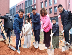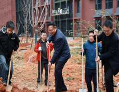 上午10时,植树启动仪式正式举行。校领导、校友代表与师生代表携手前往植树区,大家分工协作、挥锹培土、浇水扶苗,合力种下香樟树苗。现场还为认养树苗定制纪念铭牌,镌刻校友对母校的感恩与期许,嫩绿樟苗迎风挺立,成为校园一抹清新亮色。